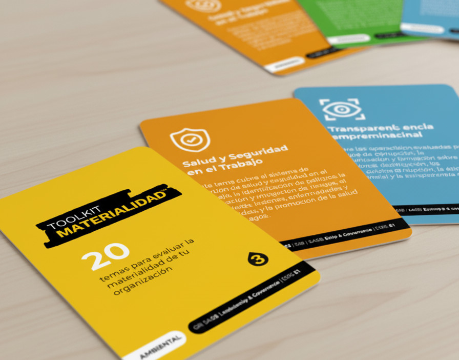 flashcards con temas ESG / GRI / SASB que dinamizan y enfocan la conversación.